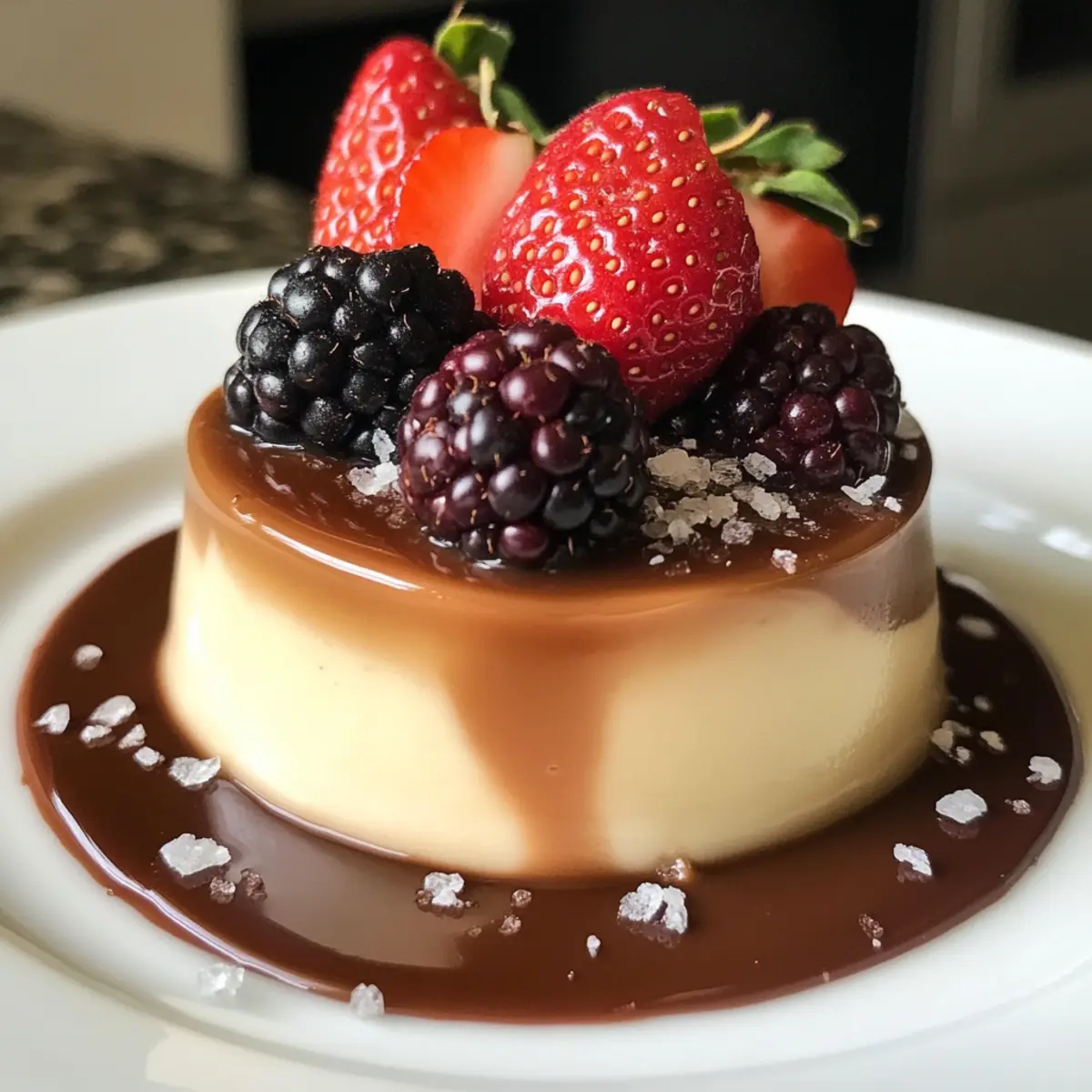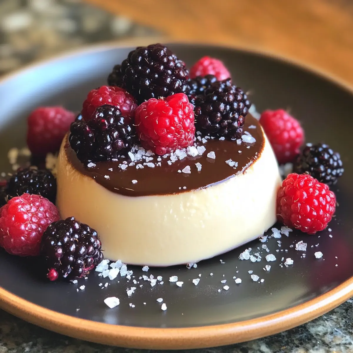 Once the panna cotta has set, gently pour the chocolate ganache on top of each chilled glass. You can elevate the presentation with fresh berries or a sprinkle of sea salt. To serve your delightful Caramel Panna Cotta Chocolate Truffle, simply scoop a spoonful and enjoy the layers of creamy decadence.