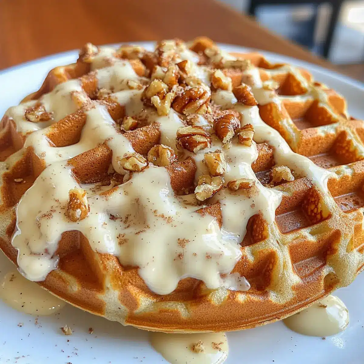 Once cooked, carefully remove the waffles from the iron and place them on a serving plate. Drizzle the cream cheese mixture generously over the warm waffles, allowing it to melt slightly into the nooks and crannies. Pair with fresh fruit or a side of crispy bacon for a delightful breakfast that’s sure to impress your family!
