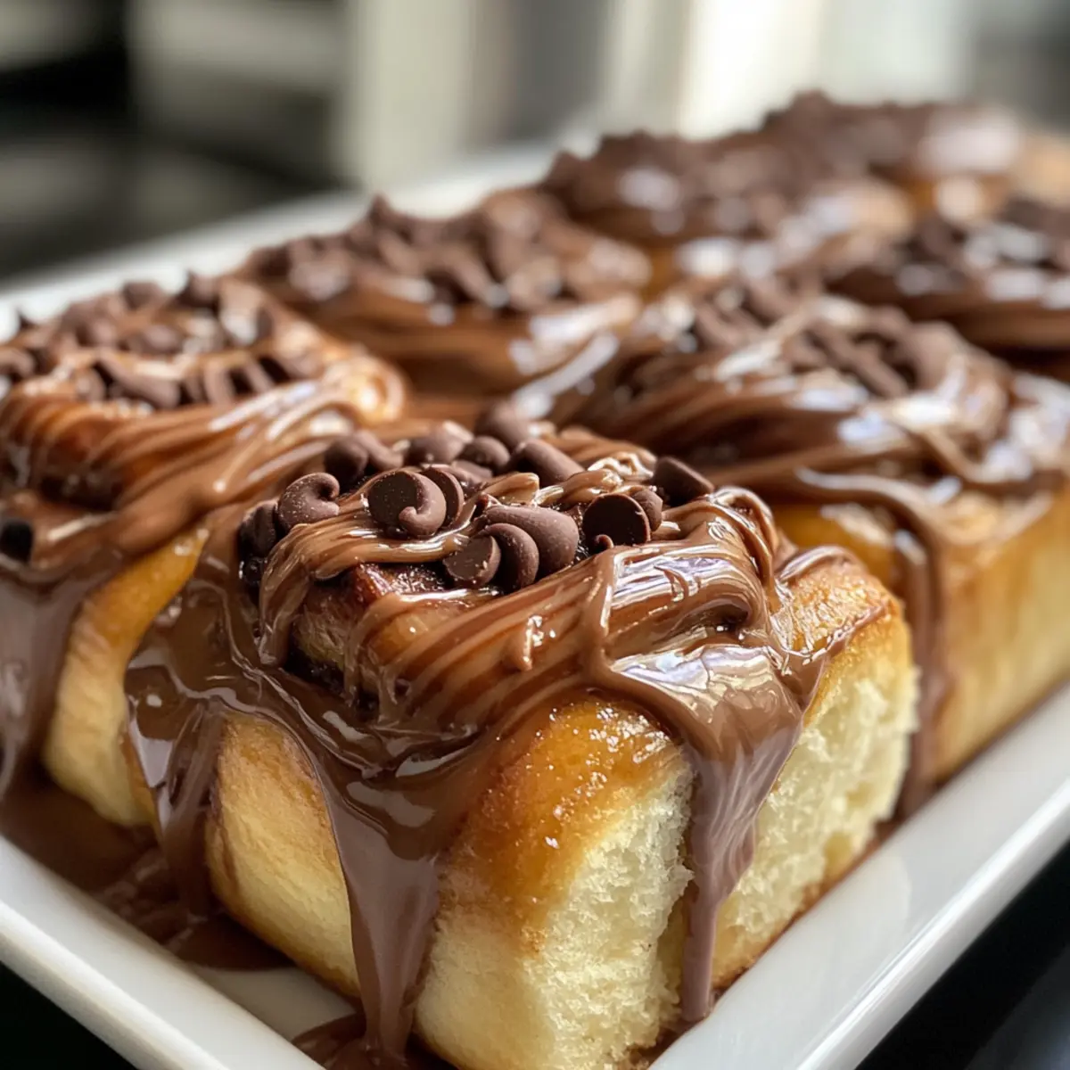 Once baked, remove the rolls from the oven and let them cool slightly in the pan. Drizzle warm Nutella over the top of the rolls with a spoon or in a small zip-top bag with the corner snipped off to create a beautiful pattern. Allow the rolls to cool for a few minutes before serving, and delight in the gooey, chocolatey goodness that awaits!