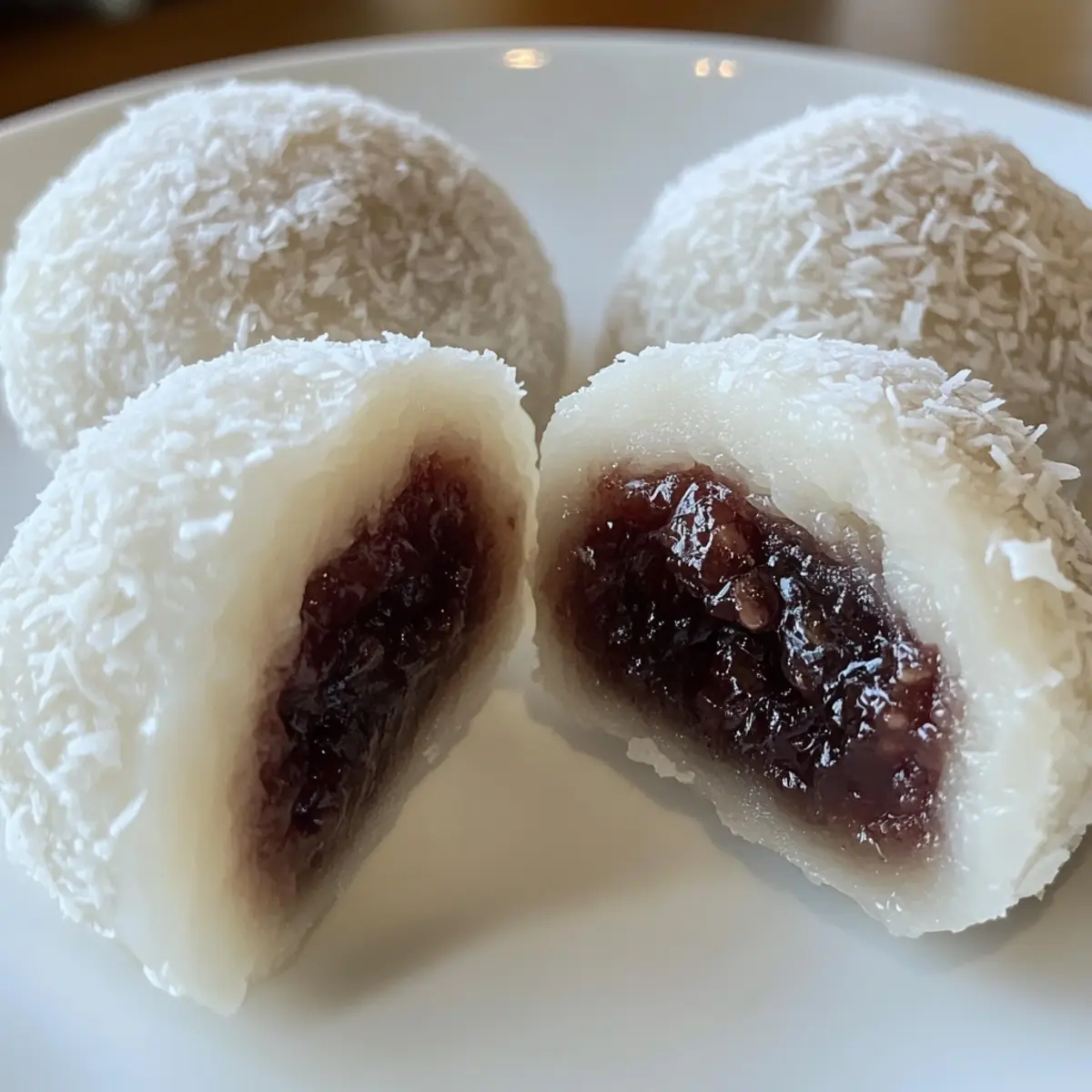 Seal Well: Ensure the edges of your mochi are tightly sealed after adding the red bean paste to avoid spills while rolling in shredded coconut.