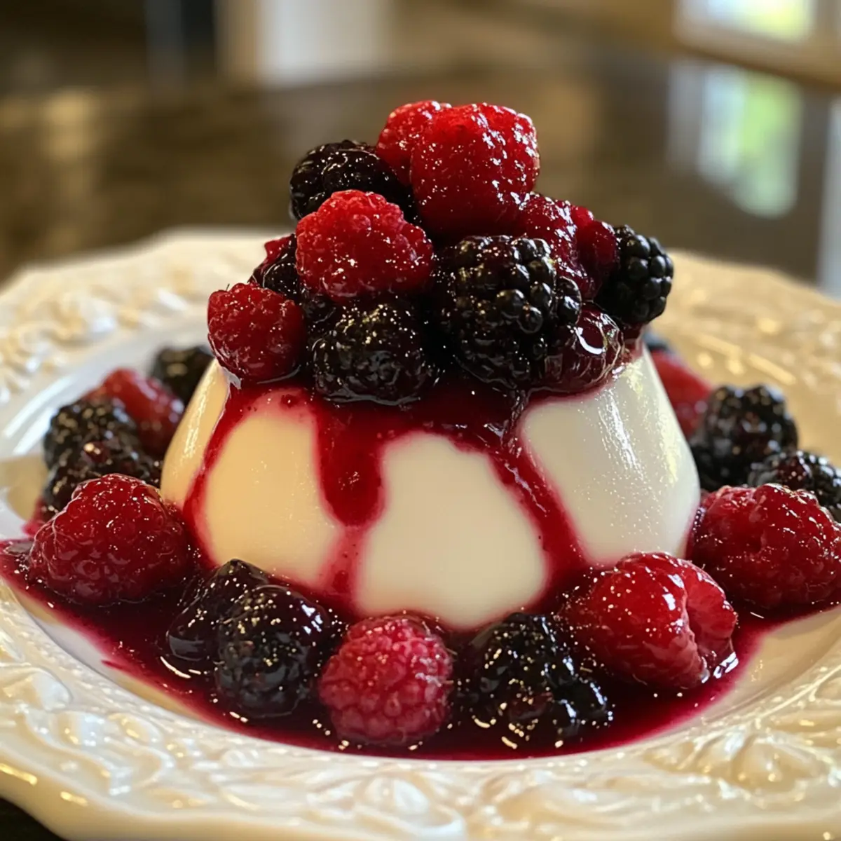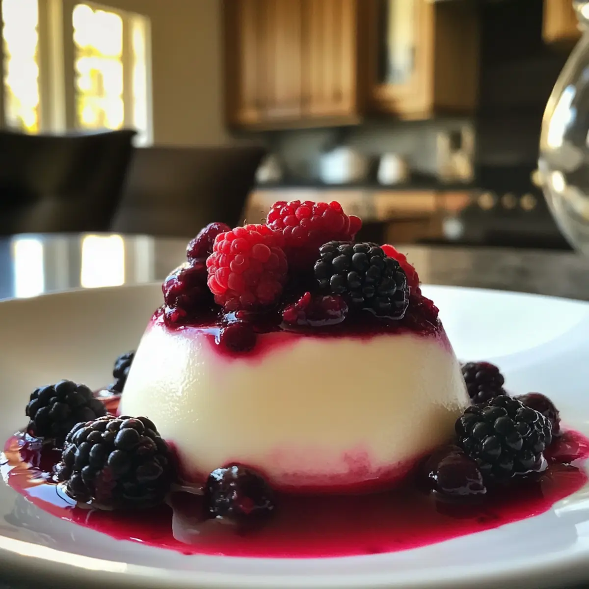 - Once the panna cotta is set, remove from refrigerator and top with the cooled berry compote before serving.