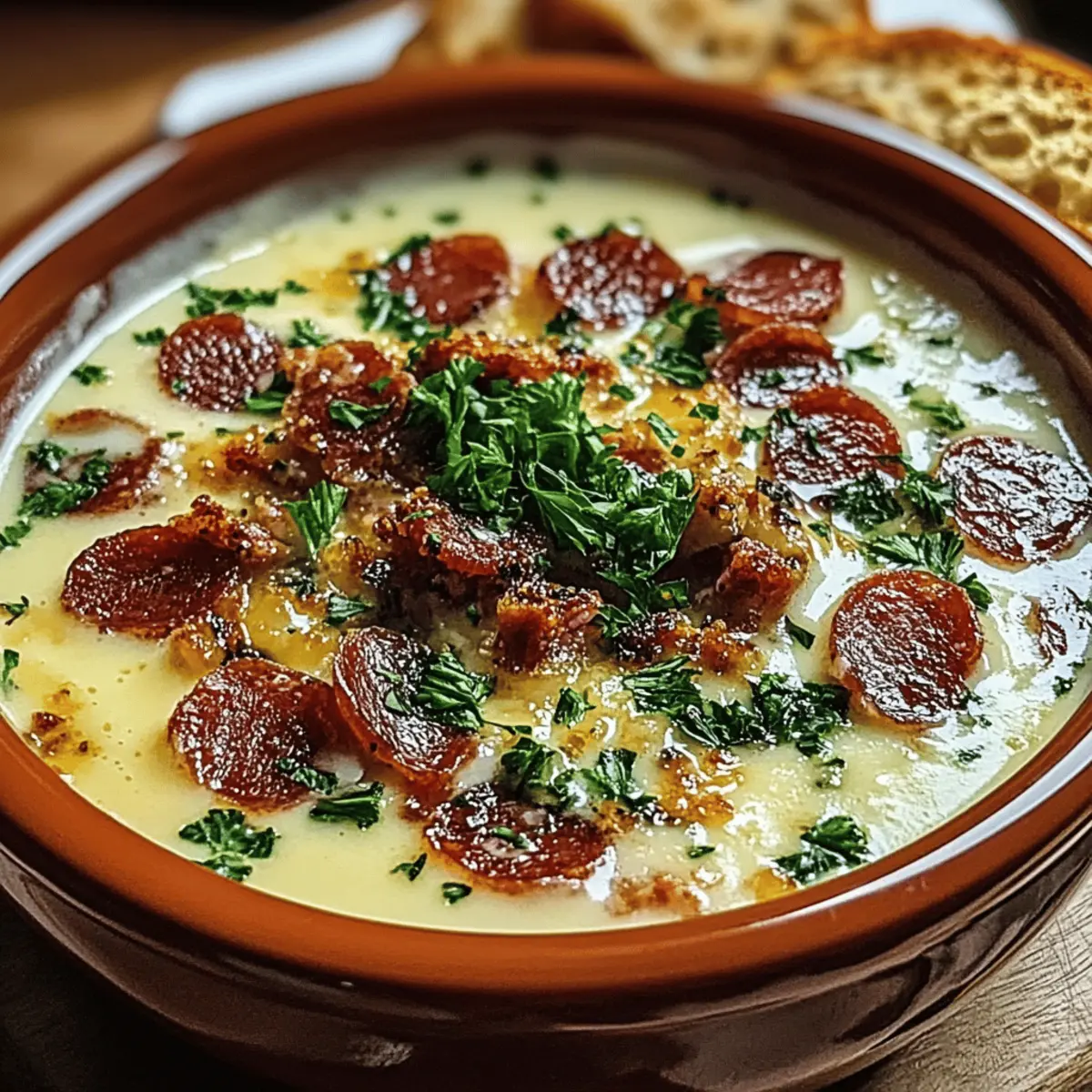 Ladle the creamy charcuterie soup into bowls, garnishing with freshly chopped parsley for a burst of color and freshness. Serve immediately alongside crusty bread for dipping. The presentation will be as inviting as the comforting flavors, making this soup a perfect centerpiece for any meal.