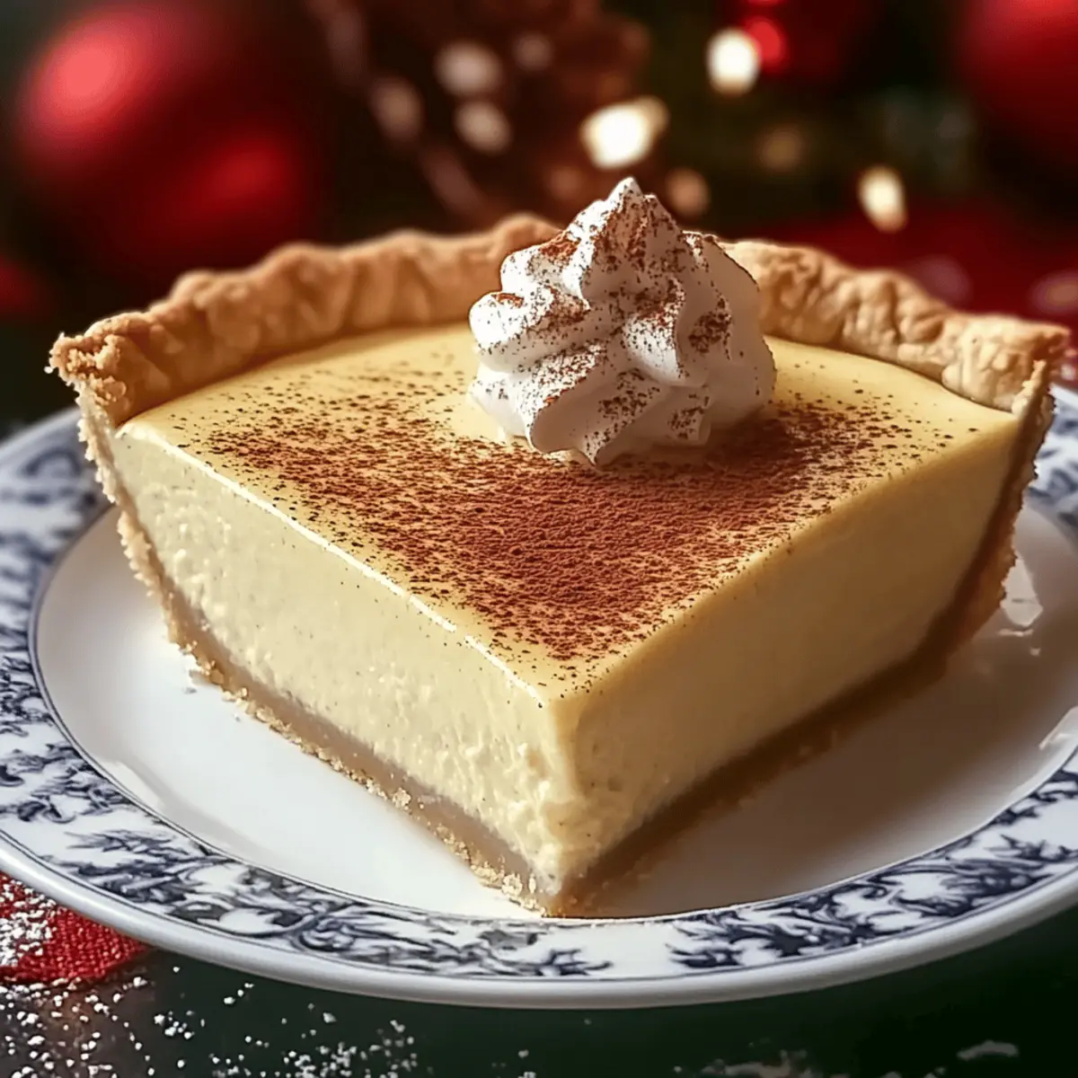 When ready to serve your stunning creamy cinnamon-vanilla custard pie, top with a dollop of fresh whipped cream and a light sprinkle of cinnamon for an elegant finish. This delightful touch complements the flavors and invites everyone to indulge in the festive spirit.