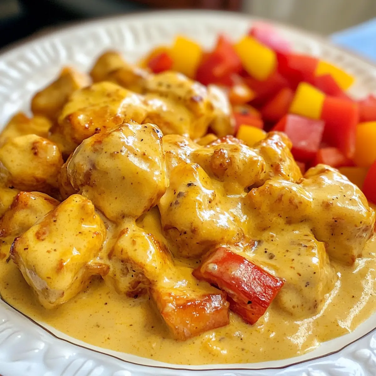 These Creamy Keto Pollo Con Queso are perfect for busy home cooks looking to save time! You can prep the seasoned chicken and diced bell peppers up to 24 hours in advance; simply keep them stored separately in the refrigerator to maintain freshness. For the creamy sauce, combine the heavy cream, cream cheese, and shredded cheddar up to 3 days ahead, refrigerating in an airtight container. When you’re ready to serve, just sauté the chicken and peppers, pour in the prepped sauce, and gently heat until everything is warmed through and just as delicious. This way, you’ll have a comforting, homemade meal on the table with minimal effort!
