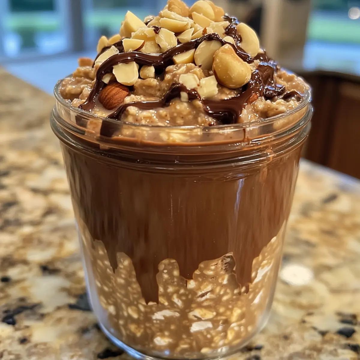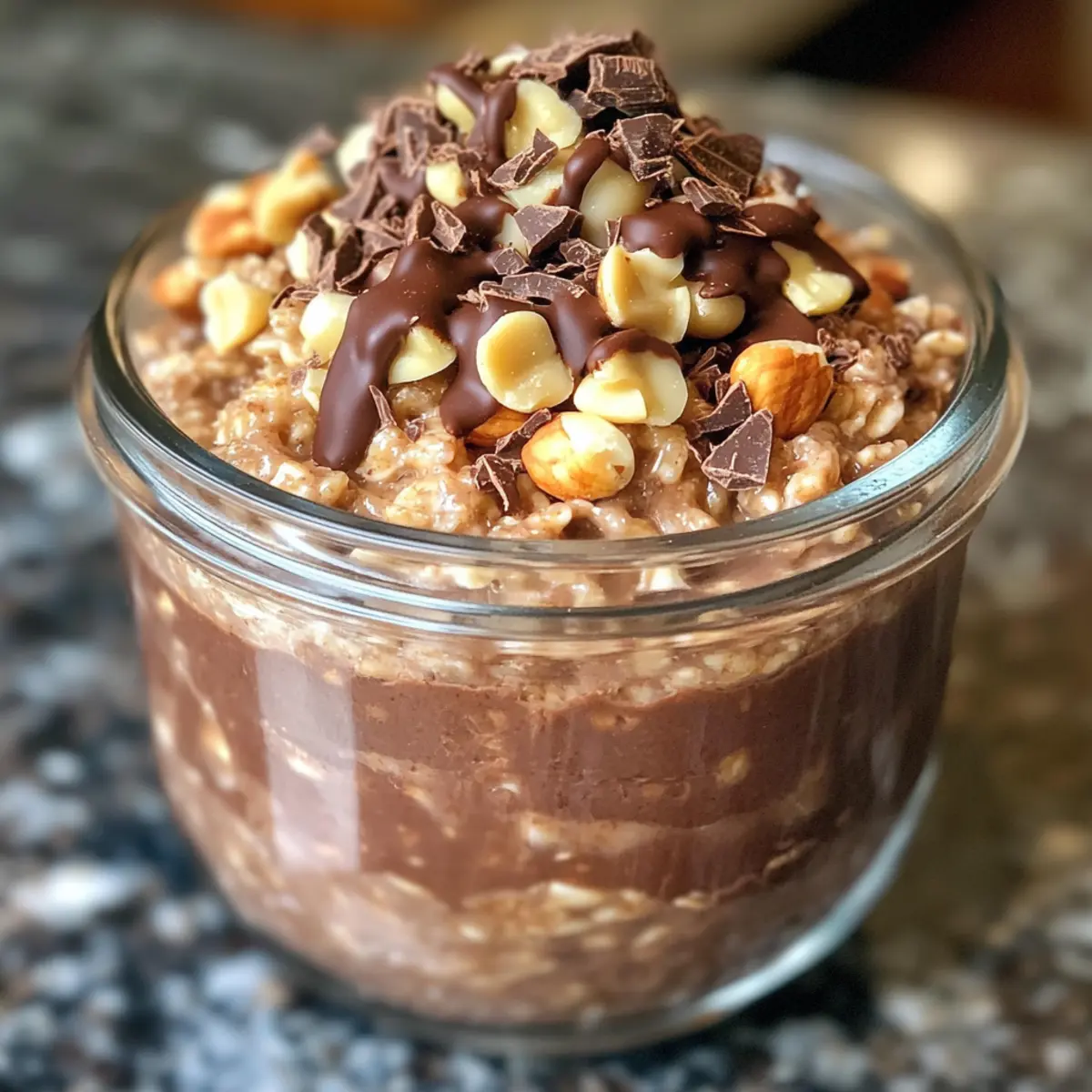 If you desire an extra touch of indulgence, melt a small amount of dark chocolate in the microwave for about 20-30 seconds until smooth. Drizzle the melted chocolate over the oat mixture in a visually appealing manner, ensuring it spreads evenly across the surface. This decadent layer enhances the chocolatey goodness of your Ferrero Rocher Protein Overnight Oats.