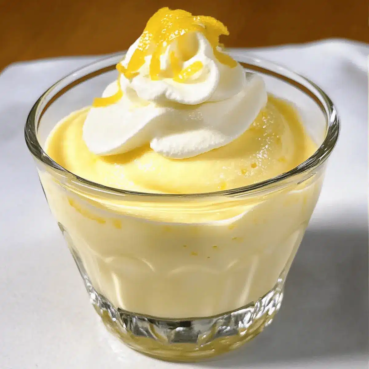 - Spoon the whipped cream generously over each serving of the Fresh Lemon Mousse. Garnish with fresh berries and sprinkle some additional lemon zest on top.