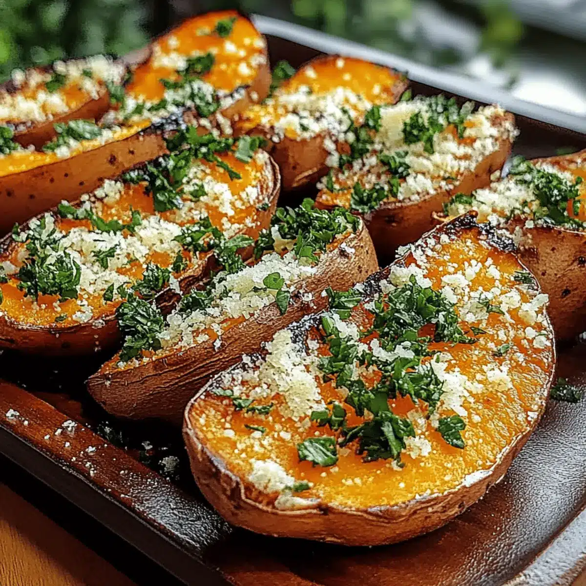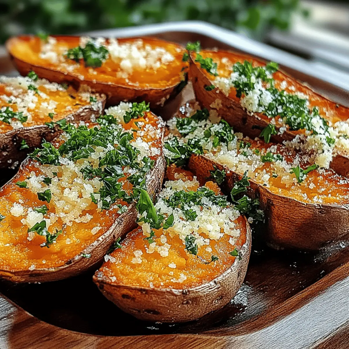 Finally, transfer the golden-brown wedges to a serving platter. Garnish with freshly chopped parsley for a vibrant touch, and serve immediately. Whether you enjoy them solo or with delicious dipping sauces, these Garlic Parmesan Sweet Potato Wedges are sure to satisfy.