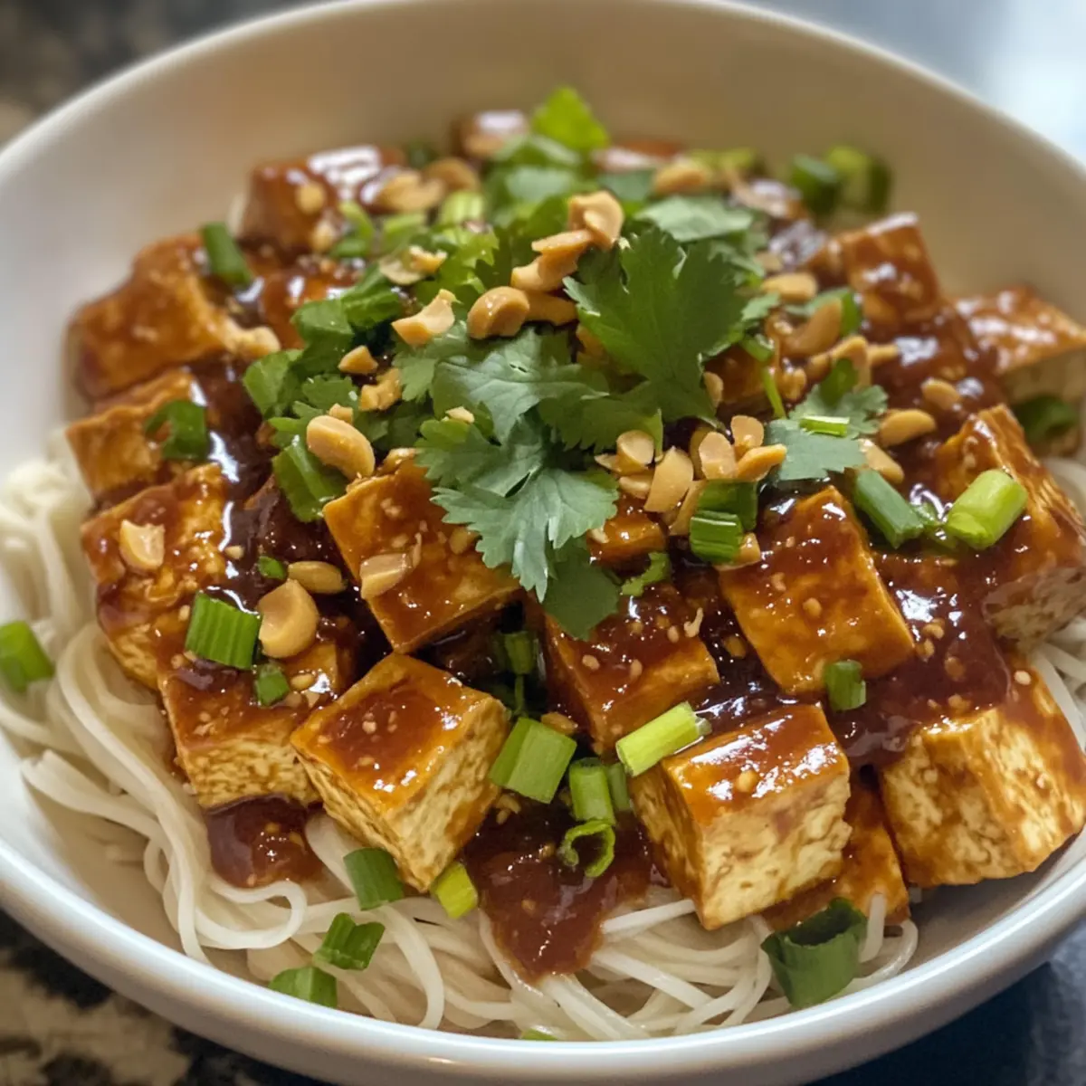 Reheating: If you prefer enjoying the dish warm, gently heat the tofu and noodles together in a pan over low heat, adding a splash of water or extra sauce for moisture, ensuring even warmth without compromising the tofu’s is delicate texture.
