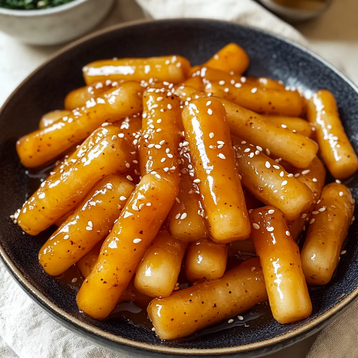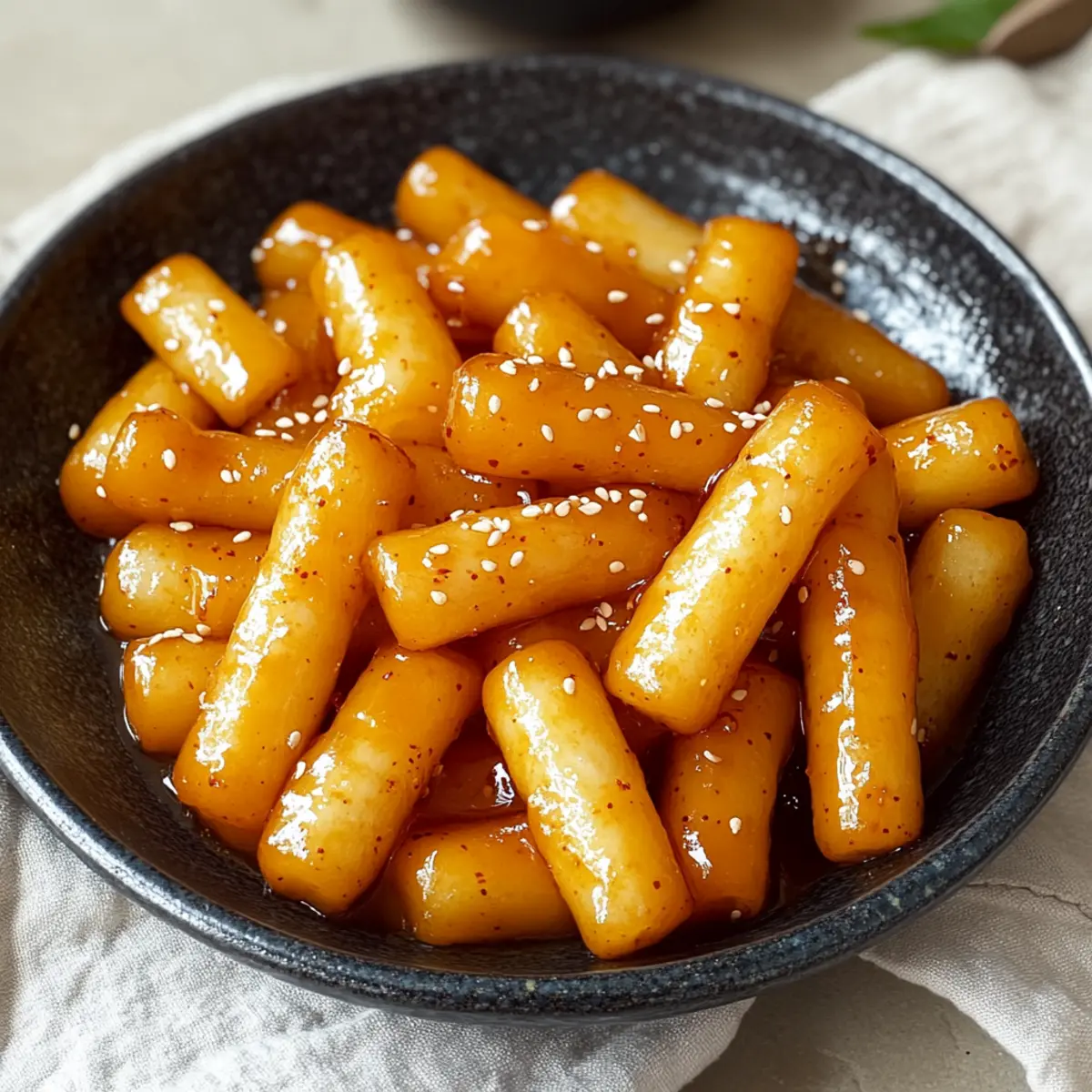Remove the skillet from heat and transfer your Honey Butter Tteokbokki onto a serving dish while they’re still warm. For a touch of elegance, sprinkle toasted sesame seeds over the top. Serve immediately to enjoy the incredible contrast of textures—crispy on the outside and soft on the inside—inviting your loved ones to savor this delightful snack.