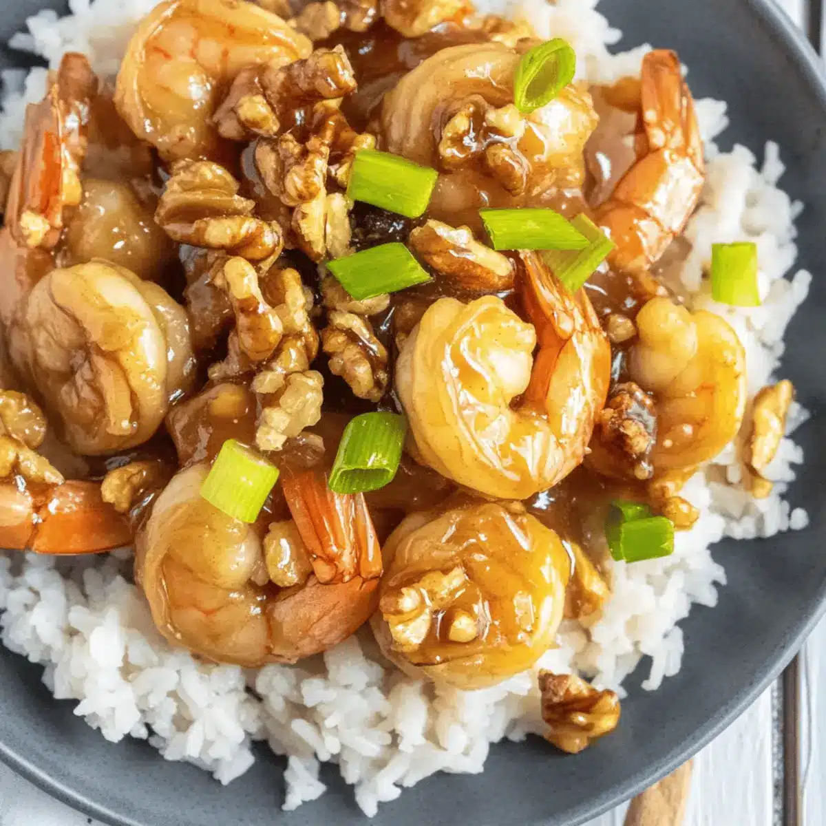 Make-Ahead Tips: Prepare the sauce and candied walnuts 1-2 days in advance, storing them in the fridge separately from the shrimp.