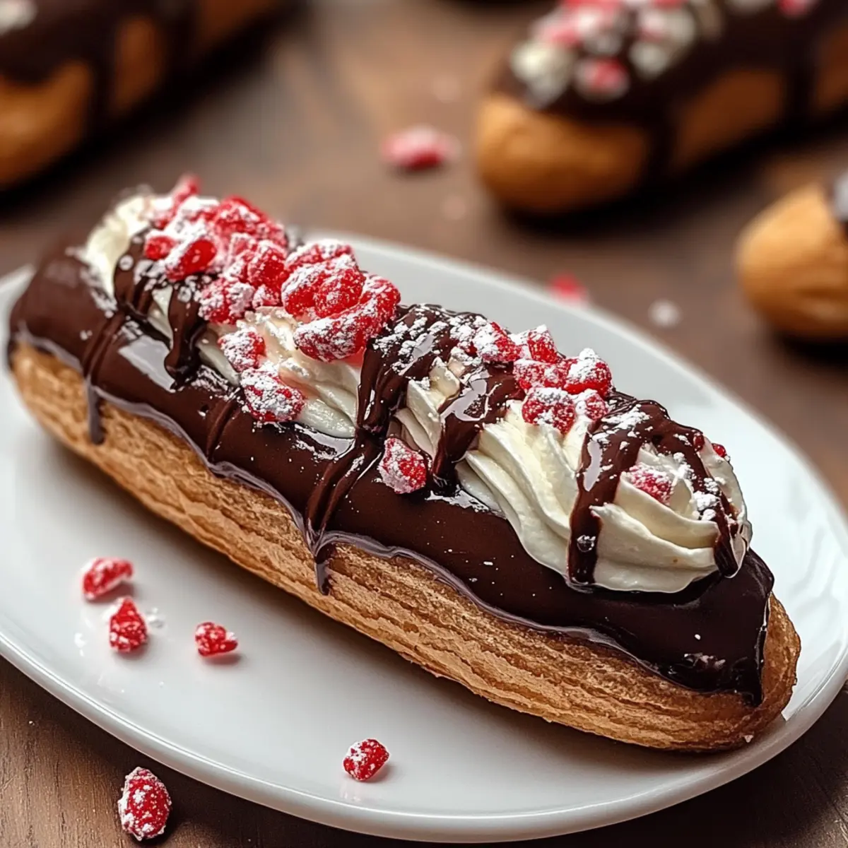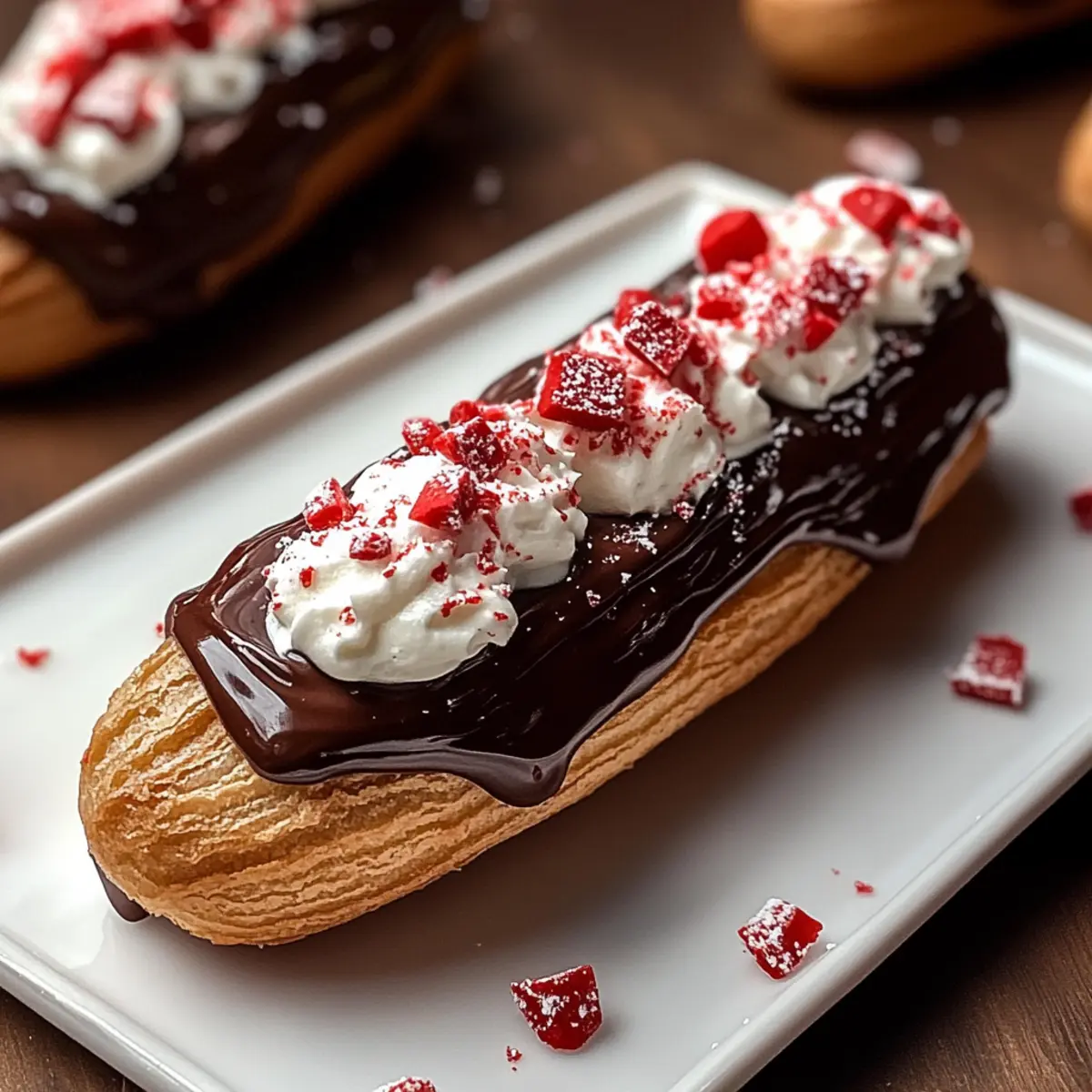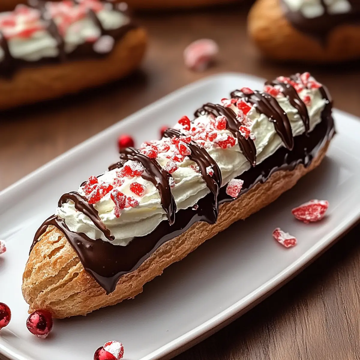 Experience the joy of Irresistible Chocolate Eclairs, a perfect festive treat that combines airy pastry and creamy peppermint filling.