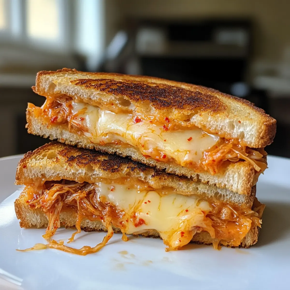 Bold, Flavorful: This Kimchi Grilled Cheese redefines comfort food by infusing it with rich, tangy, and spicy flavors that make your taste buds dance. Quick & Easy: Perfect for busy weekdays, this delightful creation comes together in less than 15 minutes! Versatile: Tailor it to your liking by adding extra toppings or even experimenting with different cheeses from your favorites. Satisfying Crunch: The crispy sourdough bread perfectly contrasts the gooey, melted cheese inside, ensuring each bite is a delightful experience. Pair it with a side of chips or Asian slaw for a complete meal that will impress family and friends alike!