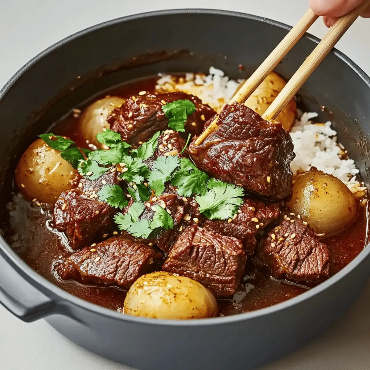 A flavorful Korean Style Pot Roast that brings comforting fusion of spices, perfect for family dinners.