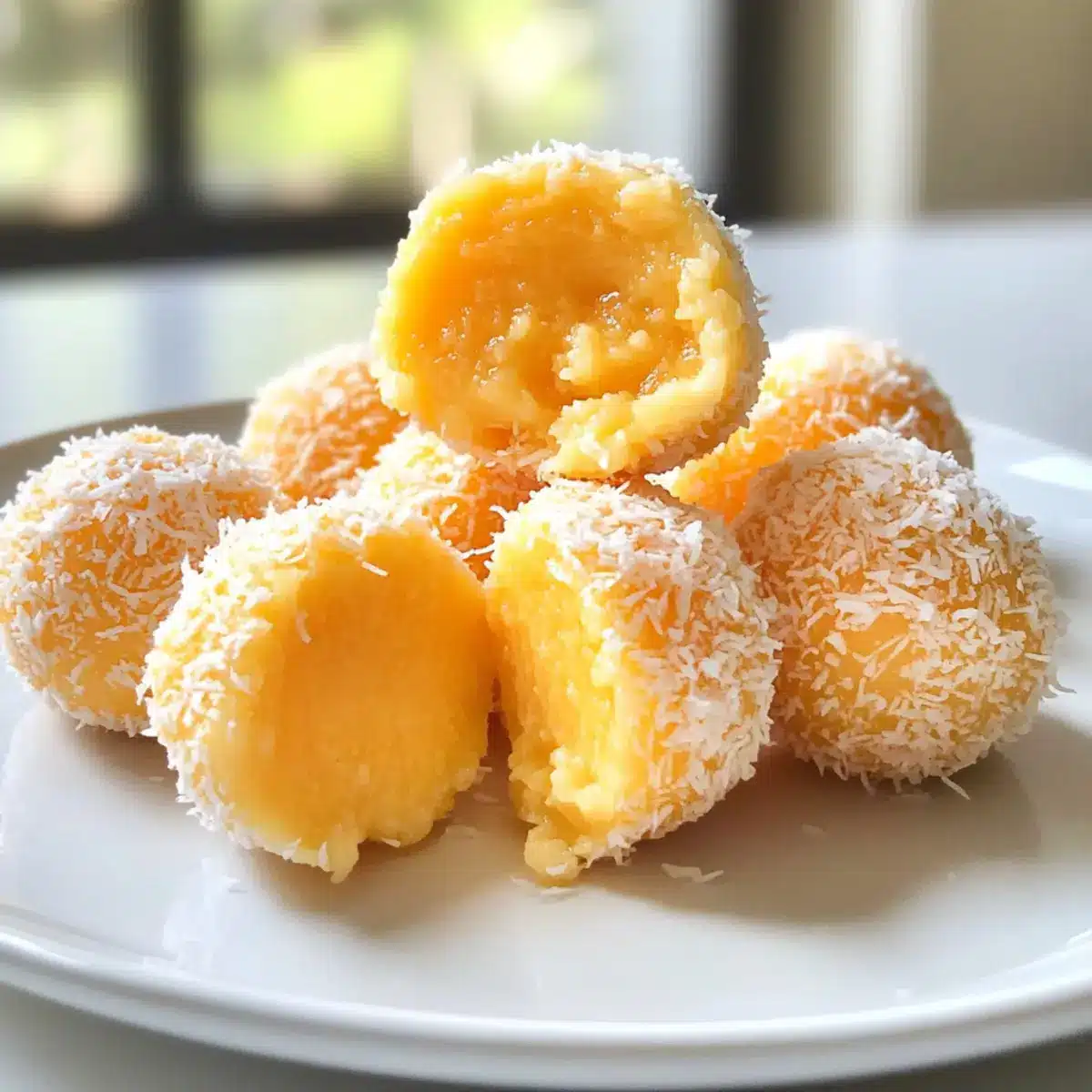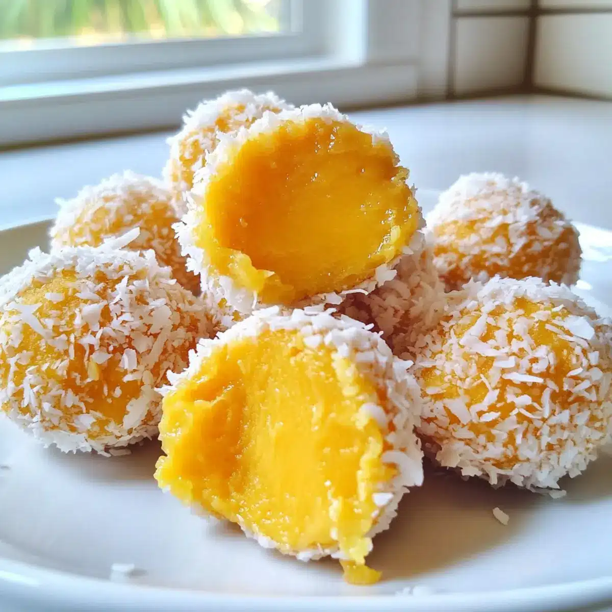 Enjoy these quick and delightful Mango Truffles, a gluten-free treat made with ripe mangoes and coconut, perfect for any occasion.