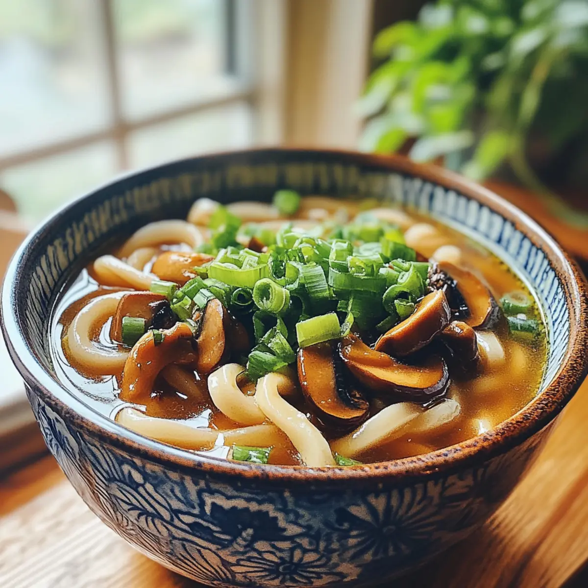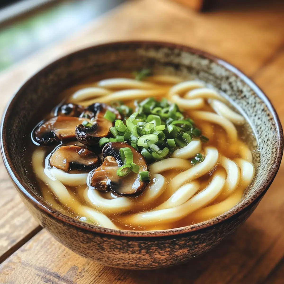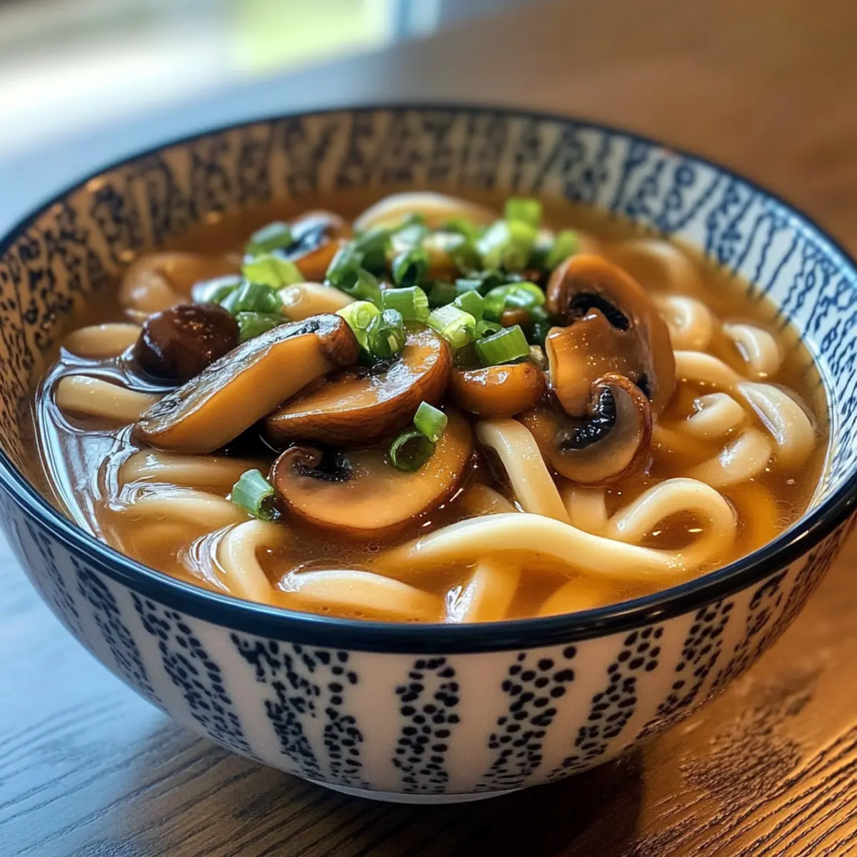 - In serving bowls, add udon noodles, ladle hot miso broth over them, top with sautéed teriyaki mushrooms, and garnish with chopped spring onions.