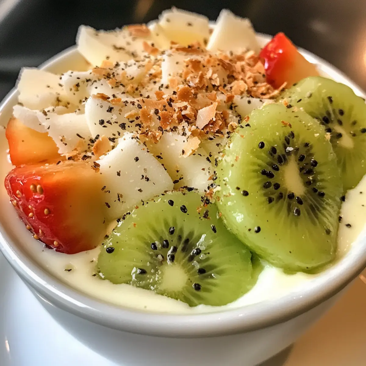 - Garnish: Add fresh fruits or toasted coconut flakes before serving.