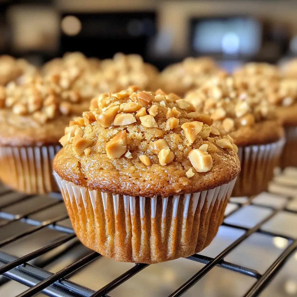 Once baked, remove the Peanut Butter Muffins from the oven and allow them to cool in the pan for about 5 minutes. Then, transfer them to a wire rack to cool completely. The delightful aroma will fill your kitchen, making them hard to resist! Serve at room temperature or slightly warm for an extra comforting treat.