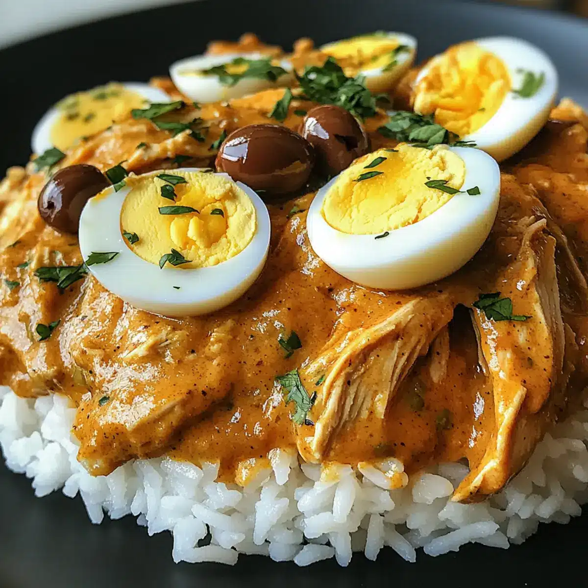 Finish your dish by adding sliced boiled eggs and olives on top for a visually appealing touch and added flavor. The contrast of the creamy sauce with the garnishes enhances the experience of your Peruvian Ají de Gallina, making it a true comfort food delight. Enjoy every delicious bite!