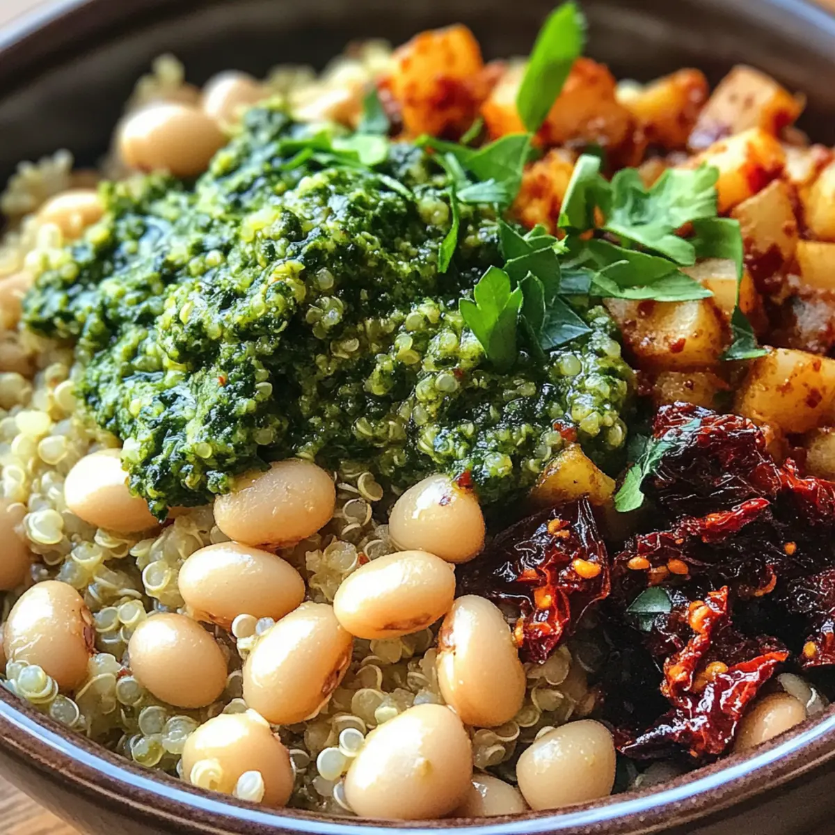 Spinach Pesto Butter Bean Lentil Quinoa Bowls with Sun-Dried Tomatoes Recipe FAQs