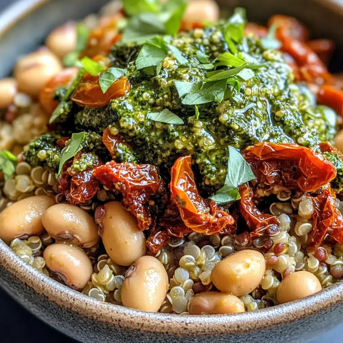 Prep Ahead: If short on time, prepare the quinoa, rinse the beans, and make the pesto in advance. This allows for a quick 10-minute assembly during busy weeknights.