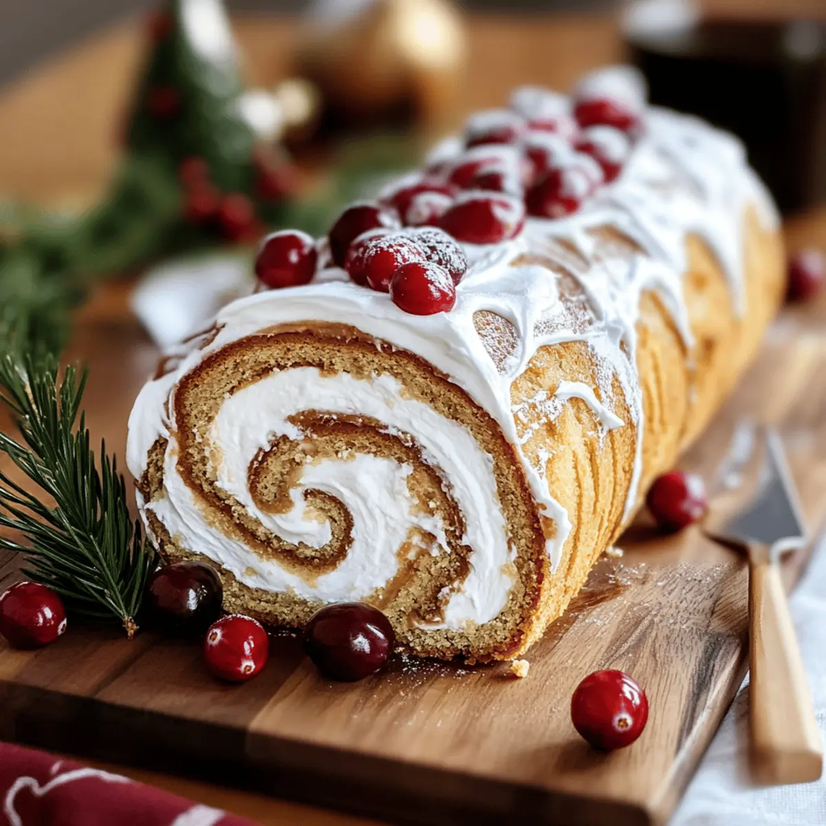 Decorative Touches: Use fresh rosemary and sugared cranberries not only for decoration but also to add flavors that enhance the overall appearance of your Quick Ginger Bread Yule Log Cake.