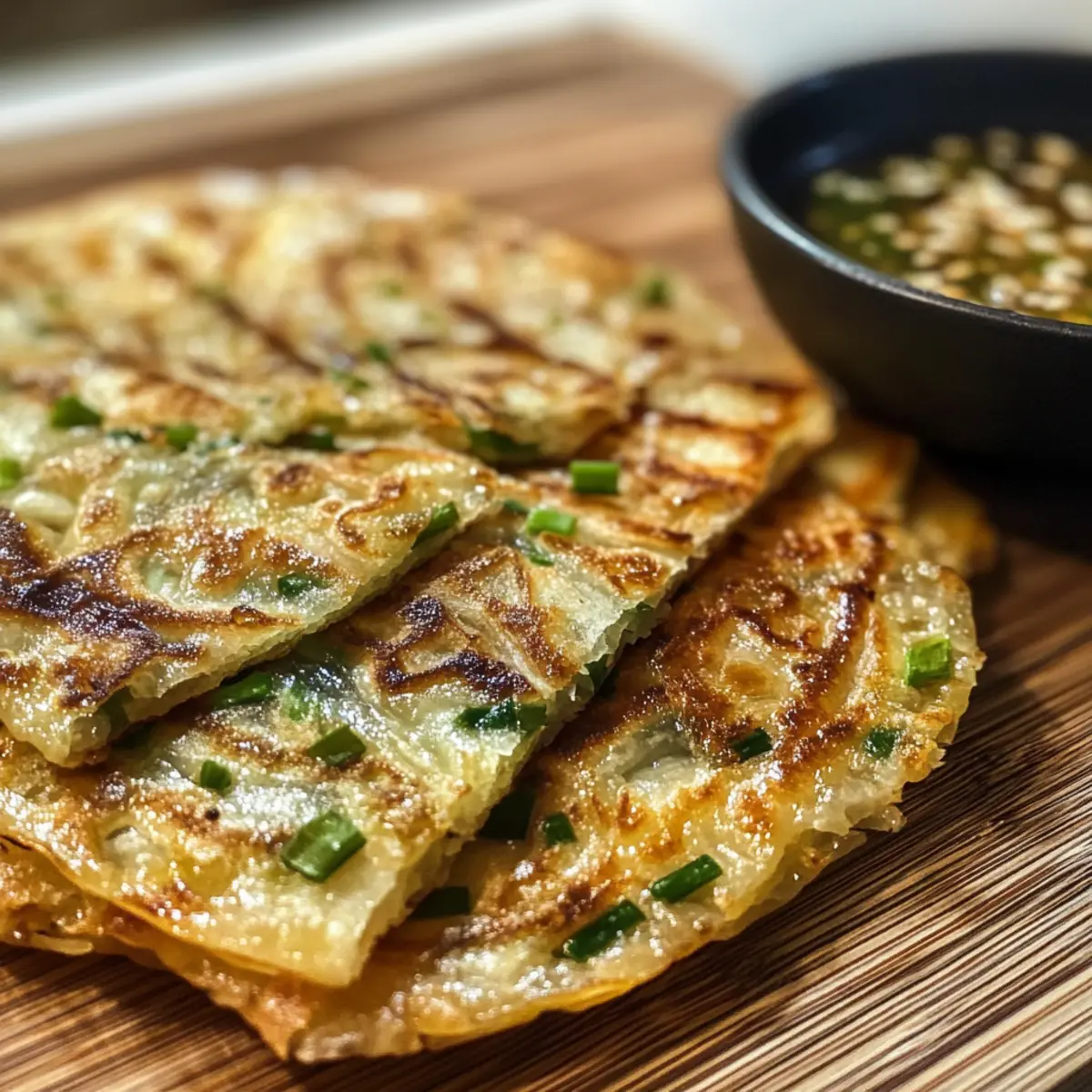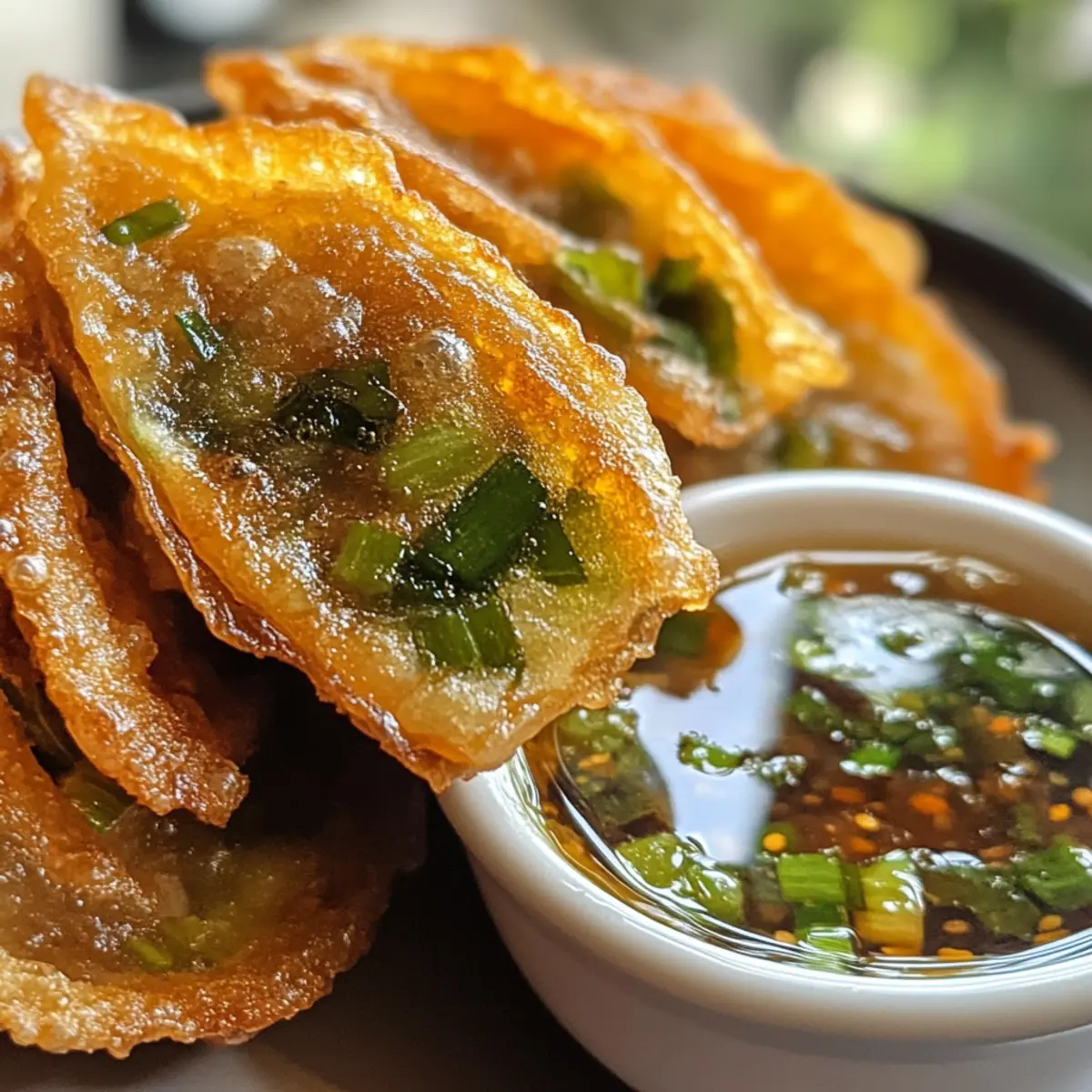 Whip up these Rice Paper Scallion Pancakes and serve them with that tangy dipping sauce to delight your taste buds!