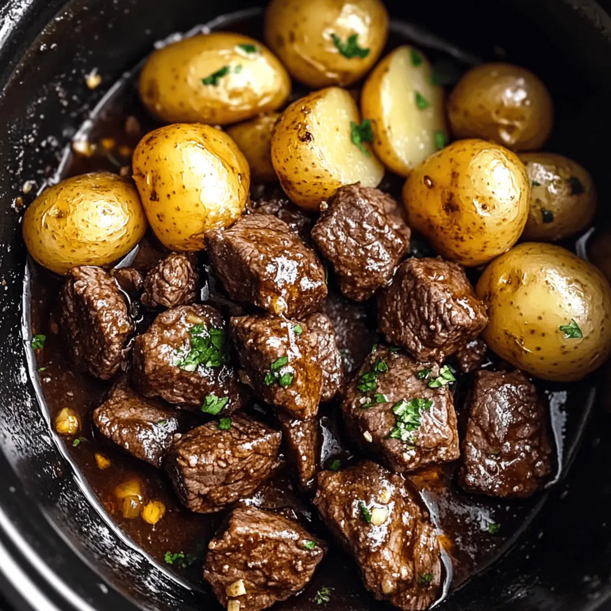 Savory Slow Cooker Garlic Butter Beef Bites with Potatoes Magic