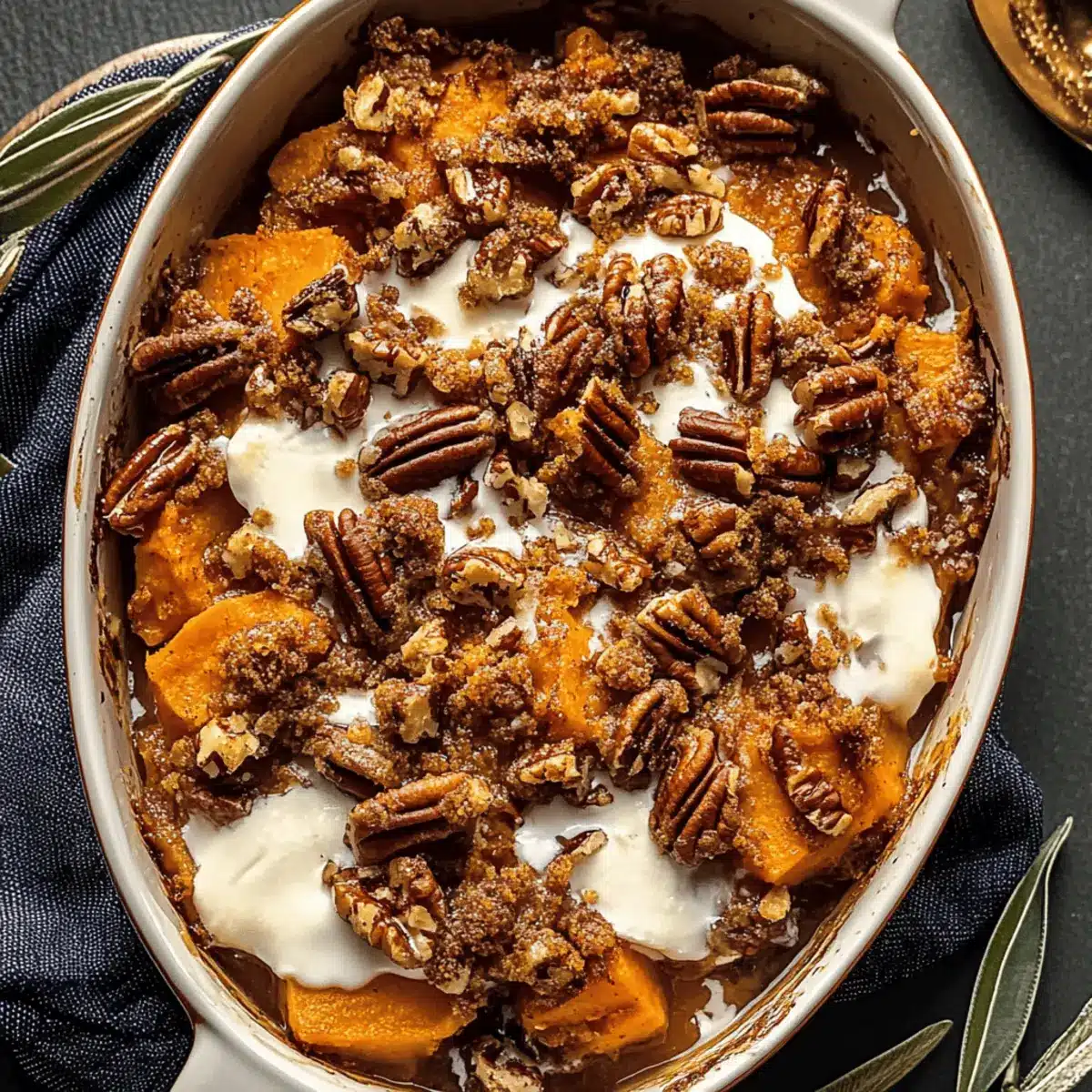 • Crispy Crumble: Top with a mix of oats and brown sugar instead of pecans for an extra crunchy texture.