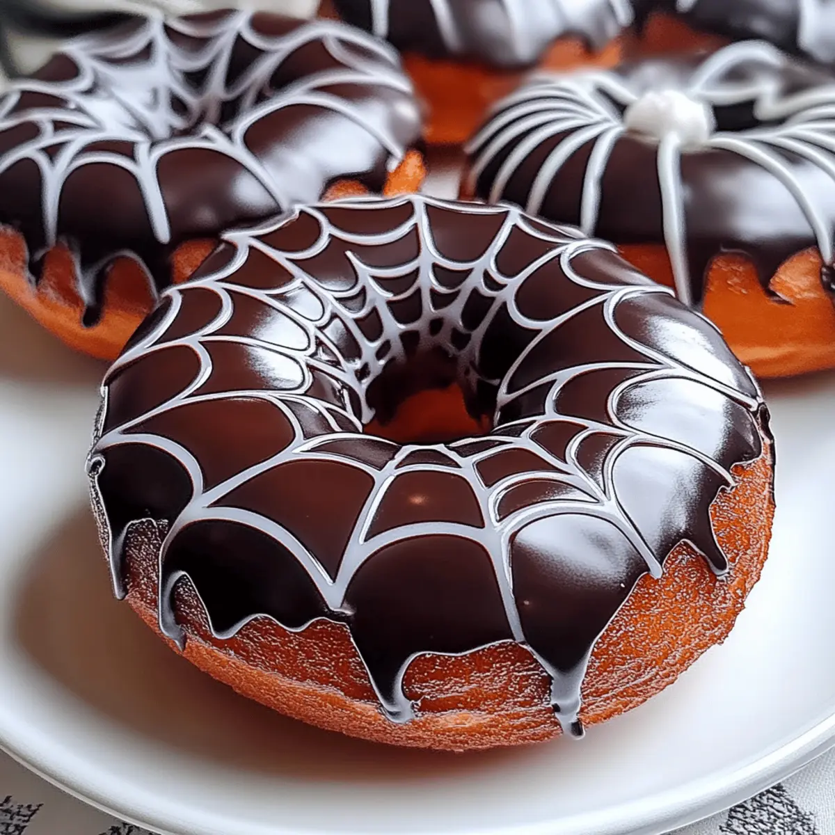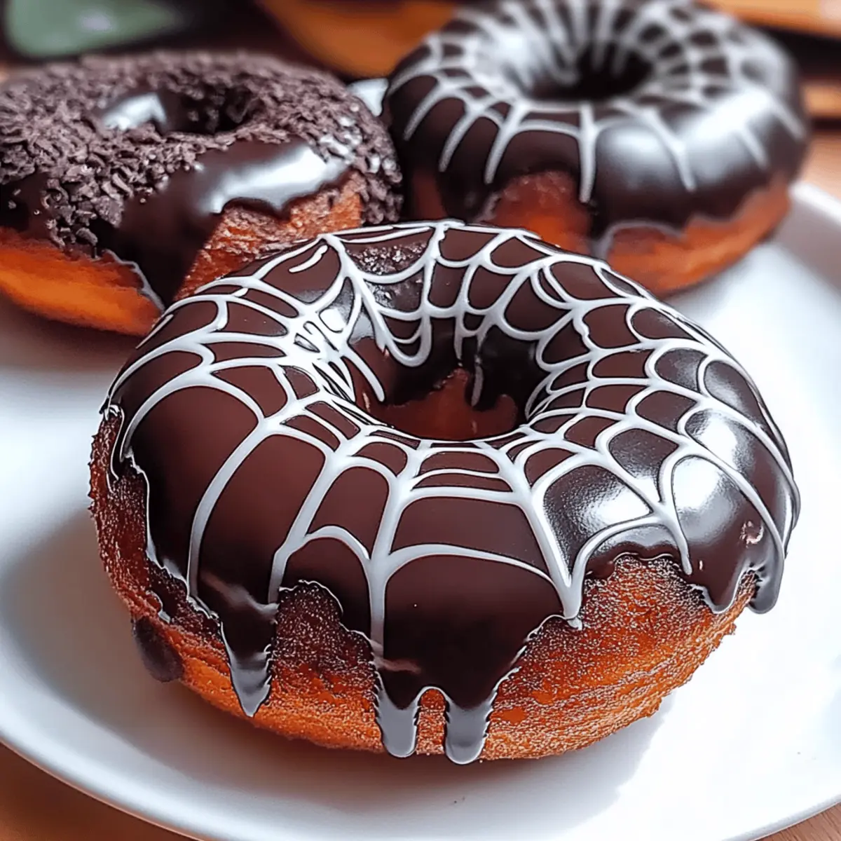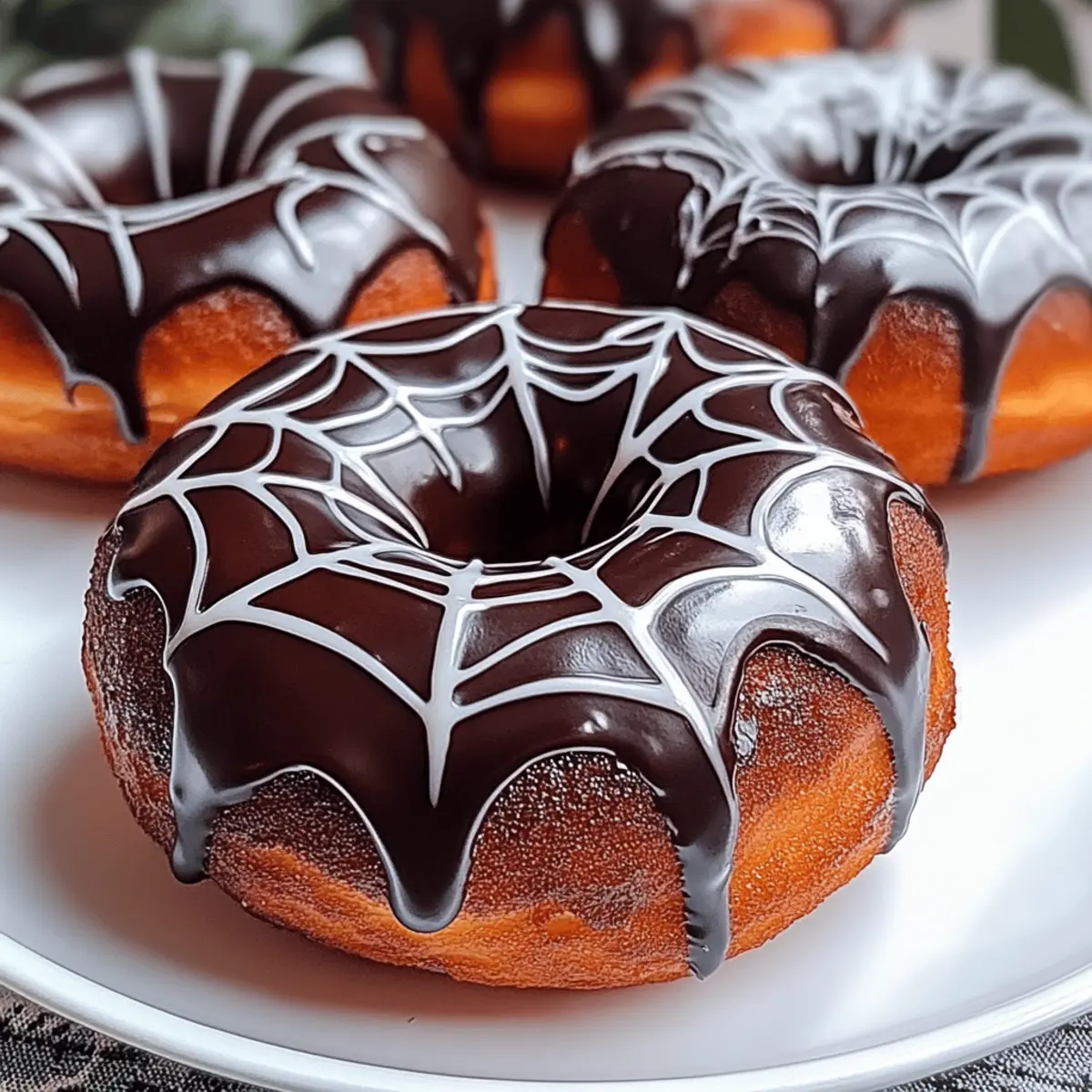 Enjoy these delightful Spider Web Chocolate-Glazed Donuts, perfect for Halloween fun and easy to make.