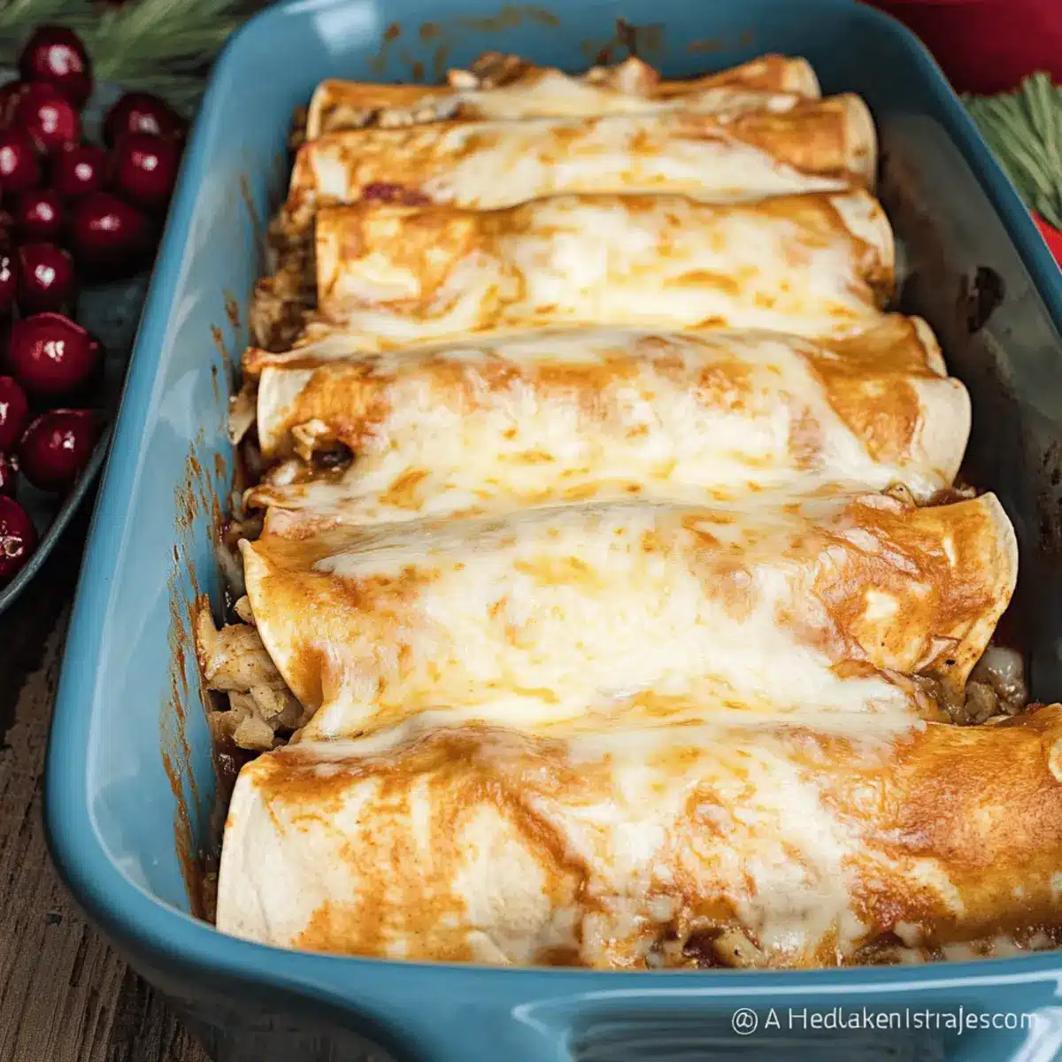 As the holiday season unfolds, I find myself with a fridge overflowing with the delightful remnants of Thanksgiving dinner. If you’re anything like me, those precious leftovers deserve more than being tucked away for another plain sandwich. Enter Thanksgiving Enchiladas—my cozy twist on traditional enchiladas that breathe new life into turkey and stuffing. These beauties come together quickly, perfect for those busy days following a festive feast, and they’re incredibly versatile, allowing you to use whatever leftovers you have on hand. Each soft flour tortilla hugs a savory filling of turkey, rich gravy, and a hint of sweet cranberry, creating a playful fusion of flavors. So why settle for boring leftovers? Ready to transform your Thanksgiving meals into something extraordinary?